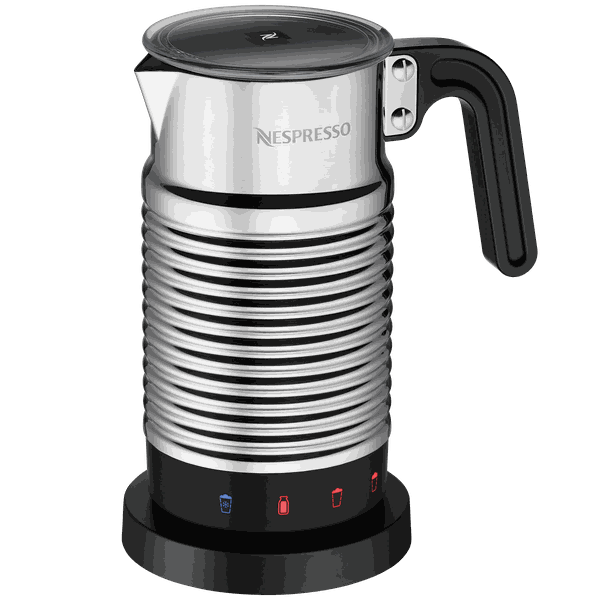 + Máy tạo bọt sữa Nespresso Aeroccino 4 làm từ thép không gỉ, phủ lớp sơn màu trắng, có cán cầm tiện lợi