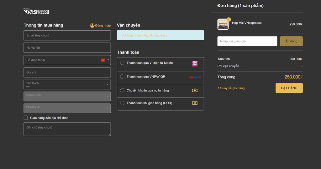 Cách 2: Đặt mua hàng online trên website vnespresso.vn